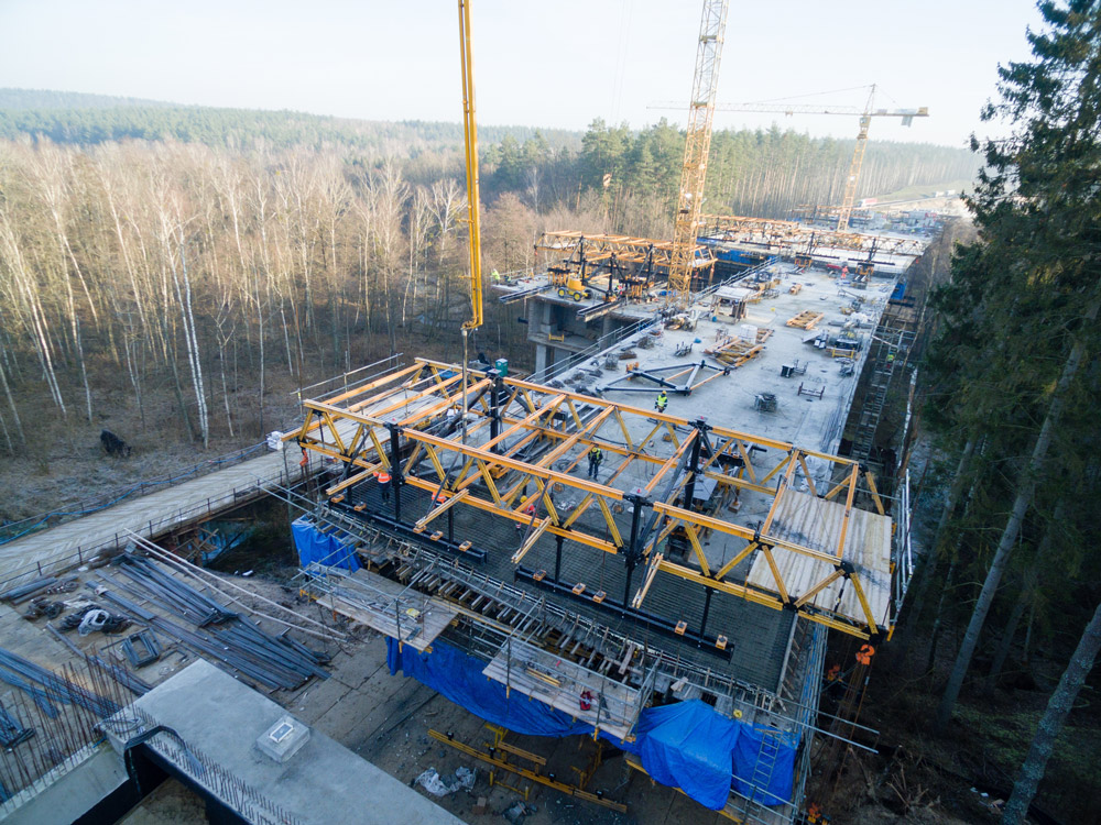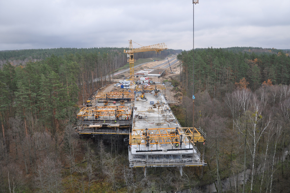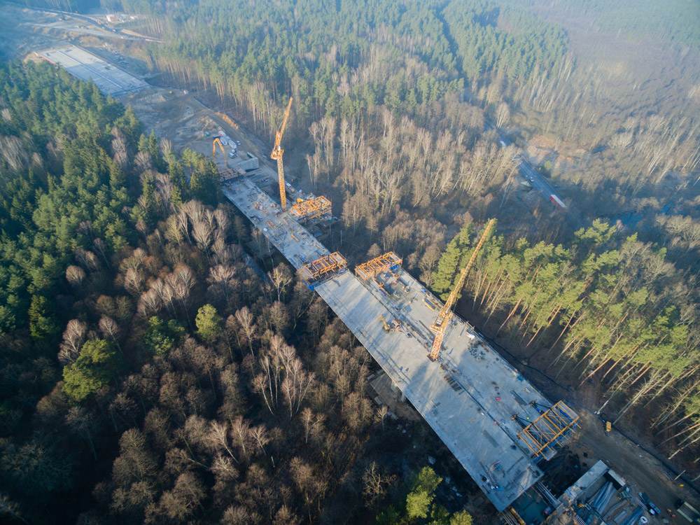 ULMA hat Material für die 220 m lange Brücke der Autobahn S7 geliefert. Diese überquert den Fluss Drwęca in Polen; einem Gebiet mit hohem ökologischen Wert.