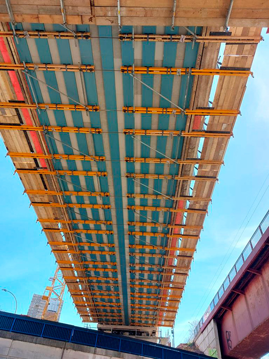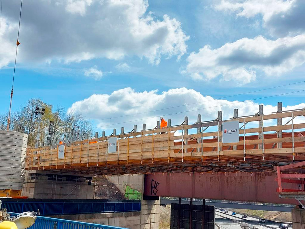 Die bei der Eisenbahnüberführung (EÜ) über die A 43 bei Herne eingesetzte VMK Holzträgerschalung in kürzester Zeit konzipiert und an den Start gebracht. Bei dem Allrounder-Trägerschalungssystem, das auf dem MK-System basiert, haben wir eine flexible und vielseitige Wand- und Stützenschalung auf den Markt gebracht, die sich für Wände, Pfeiler, Widerlager oder Stützen gleichermaßen eignet.