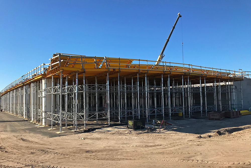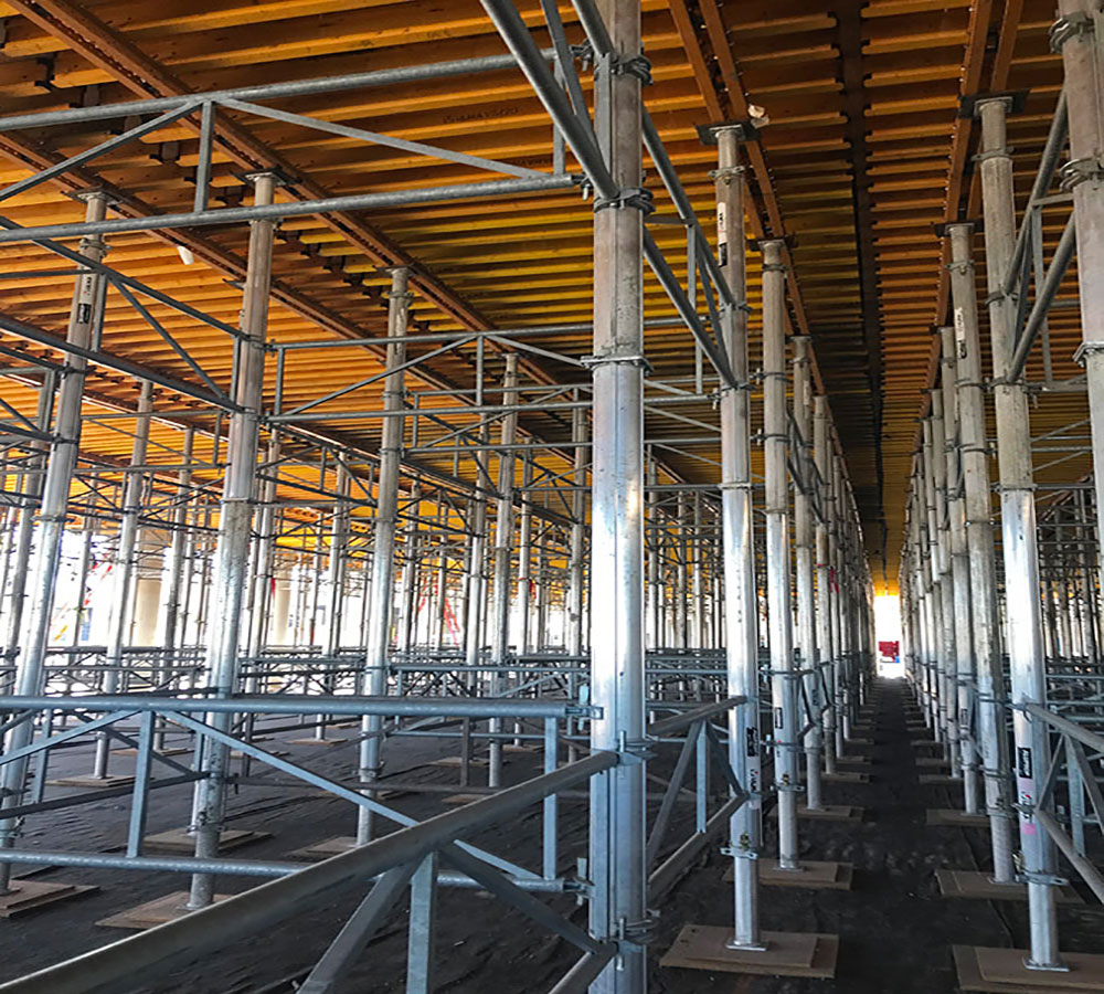 Ein Projekt, für das wir mehr als 4.360 m² Deckentische VR-L zusammen mit runden Metallschalungen und ALUPROP-Aluminiumstützen geliefert haben.