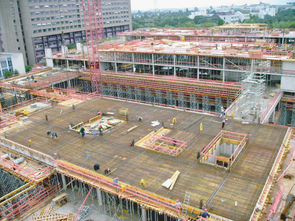 Die Decken wurden mit 68.000 m VM 20 Holzbalken und 11.600 EP Prop Einheiten ausgeführt. Die Wände wurden mit der ORMA Modulschalung errichtet, deren technische Eigenschaften eine zügige Ausführung der Bauarbeiten ermöglichten. Die große Auswahl an Höhen und Breiten ermöglichte spezifische Anpassungen an die Anforderungen des Projekts. Diese Eigenschaften ermöglichten ein schnelles Vorankommen, denn nachdem die Einheiten zusammengebaut und mit Klammern befestigt waren, wurden sie mit einem Kran in Gruppen bewegt.