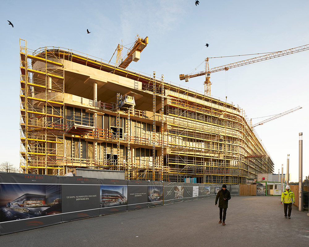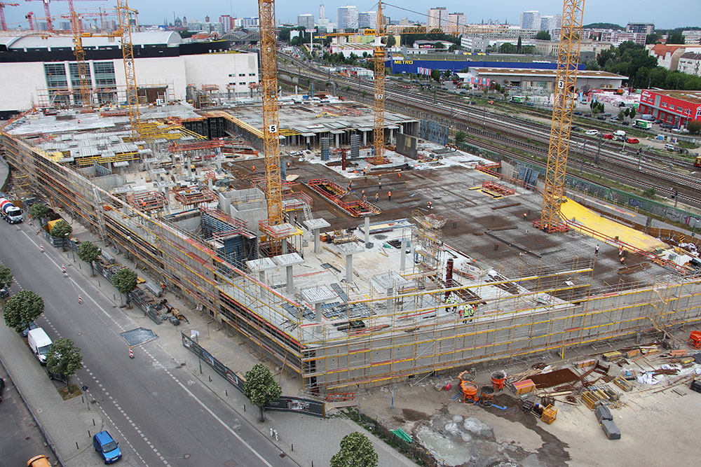 Insbesondere Wand- und Deckenschalungssysteme gehörten zu den Schwerpunkten eines Produktportfolios, mit dem in den letzten Jahren Referenzobjekte wie das Einkaufszentrum East Side Mall realisiert worden sind. Die Decken des Gebäudes bestehen aus 9.389 m² ENKOFLEX Deckenschalungen. Die Deckenschalung wurde auf EP-Stützen gestellt.