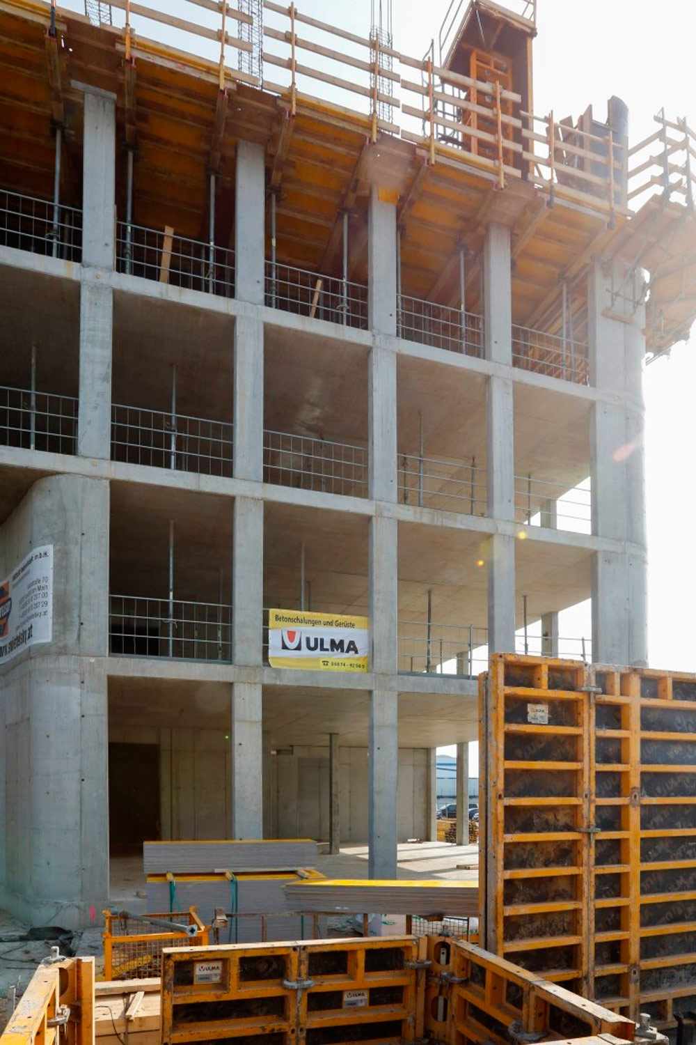 ORMA Modulschalung wurde verwendet, um die Wände des Gebäudes sowie des Parkplatzes zu errichten, wo auch einhäuptige UCAB-Träger verwendet wurden. Einen hochwertigen Abschluss erhielten die Pfeiler mit der Gelenkschalung F4-MAX, die sich als Zusatznutzen für den Transport kompakt zusammenfalten lässt.