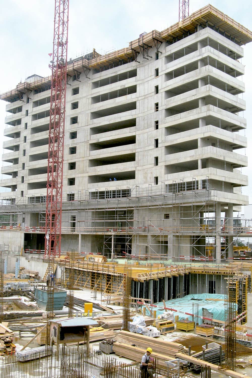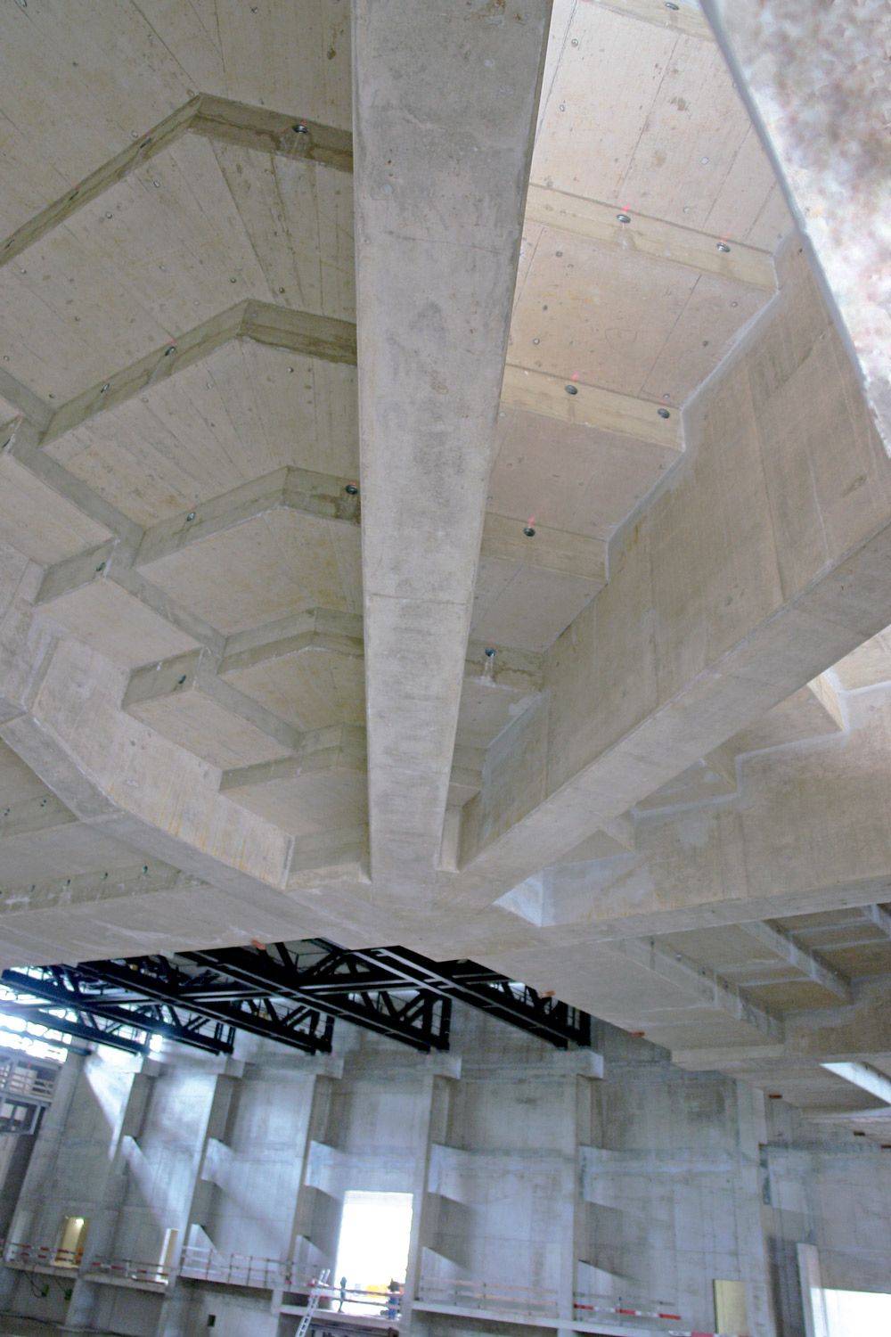 Ein Gebäude dieser Größenordnung benötigte für jede Lösung das passende Produkt: ORMA-Schalung für die Ausführung von Wänden, VR-Tische für Decken und T-60-Stützturmkonstruktionen als Lastverteilungssystem. Diese Systeme sorgten immer für die notwendige Sichtbetonoberfläche und deren Anpassung an die unterschiedlichen Geometrien.