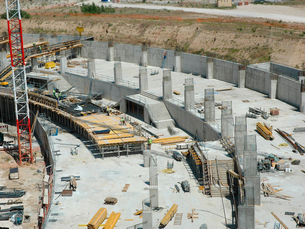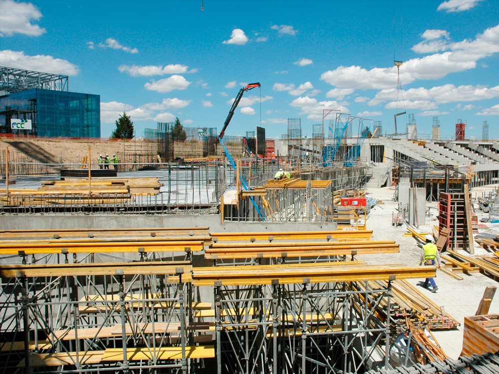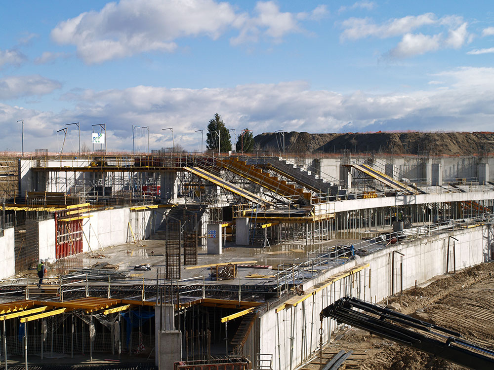 Für die Erweiterung baute man ringsum sternförmig eine Reihe von Bogengängen auf verschiedenen Ebenen, mit maximalen Stützweiten von 15,9 m, auf denen vorgefertigte Betonelemente angeordnet wurden. So entstanden die Tribünen. Dieser Teil des Komplexes wurde mit durch leichtgewichtige Traggerüst-Strukturen abgestützte ENKOFORM Schalung erstellt.