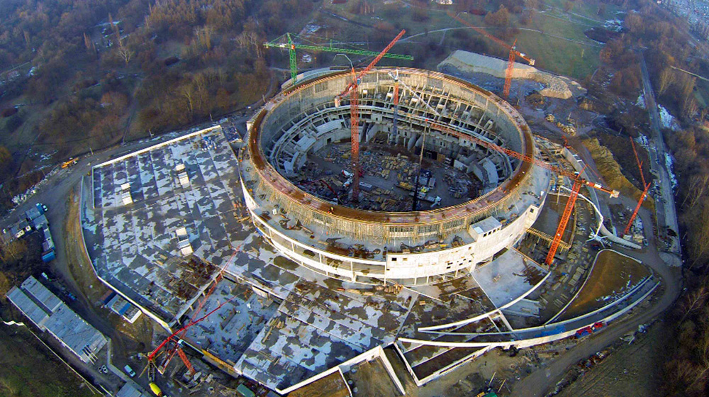 Nach vielen Jahren der Planung wurde die größte Sportarena Polens schließlich in Krakau errichtet. Sie bietet eine Gesamtfläche von fast 97.000 m², das große Hauptspielfeld hat 4.300 m².