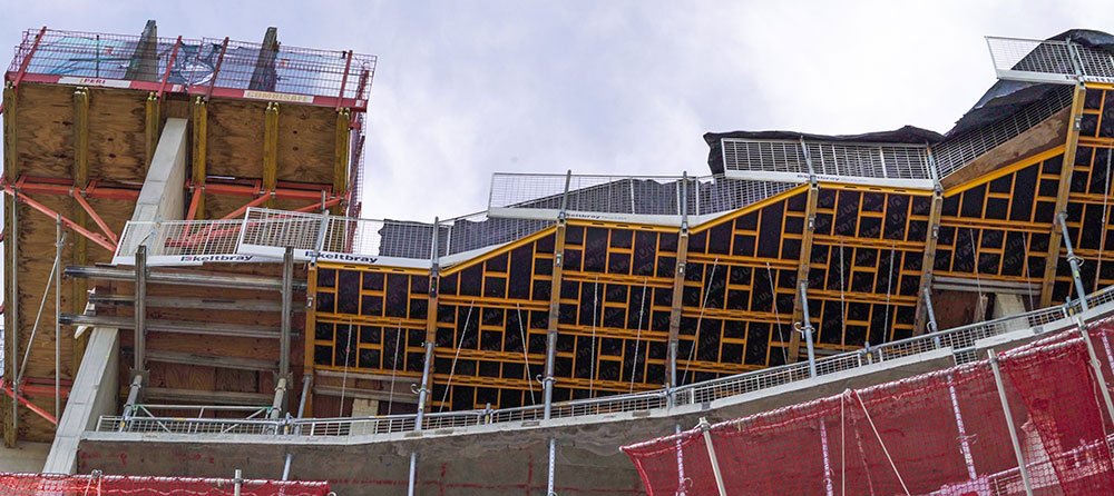 Das Team von ULMA-Adapt Formwork beteiligt sich an der dritten Phase des Projekts mit der Lieferung von CC-4-Moduldeckenschalung für das symbolträchtigste Gebäude des Komplexes, da es das längste in Europa mit einer sinusförmigen Geometrie ist, die der Silhouette einer Schlange gleicht. Die Merkmale dieses Gebäudes erforderten innovative Lösungen. Dafür haben wir die BIM-Arbeitsmethode angewandt, dank derer alle Projektbeteiligten in der Lage waren, alle Anwendungen und technischen Lösungen im 3D-Modell zu visualisieren.