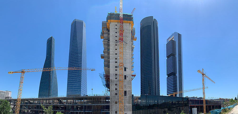 Das Caleido ist das fünfte Gebäude in der als Cuatro Torres Business Area bekannten Skyline von Madrid. Ein nachhaltiges Projekt, das auf seinen 36 Etagen ein Privatkrankenhaus, ein Einkaufszentrum und den ersten großen vertikalen Campus in Europa beherbergen wird.