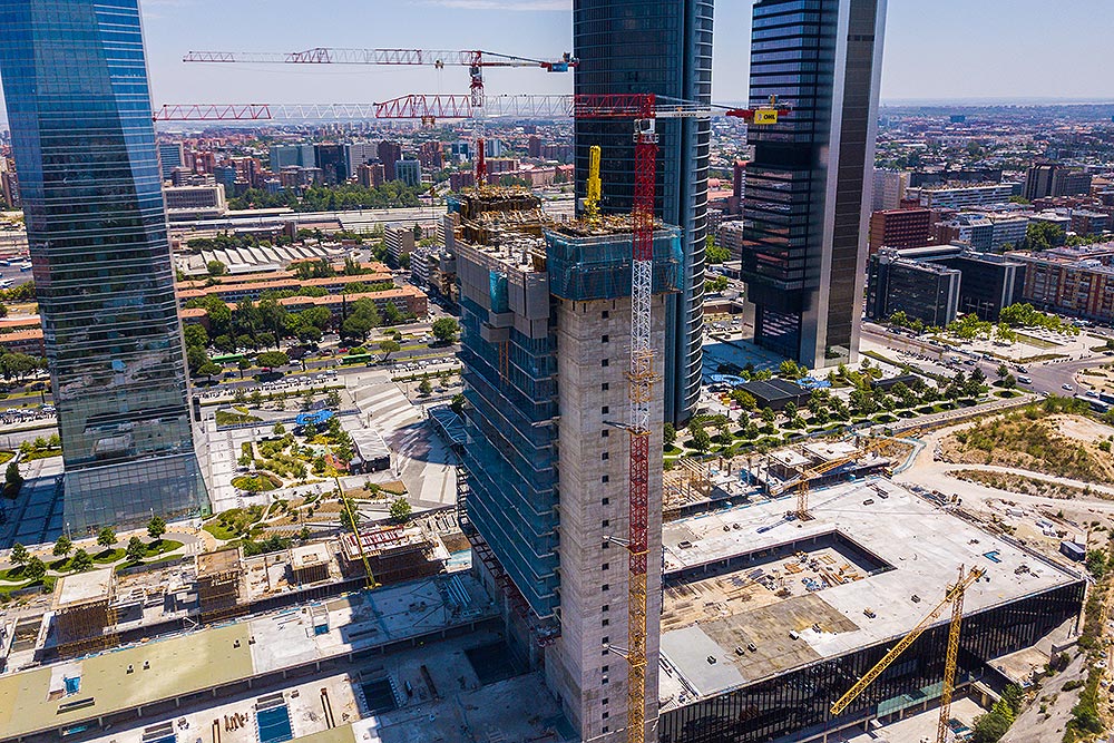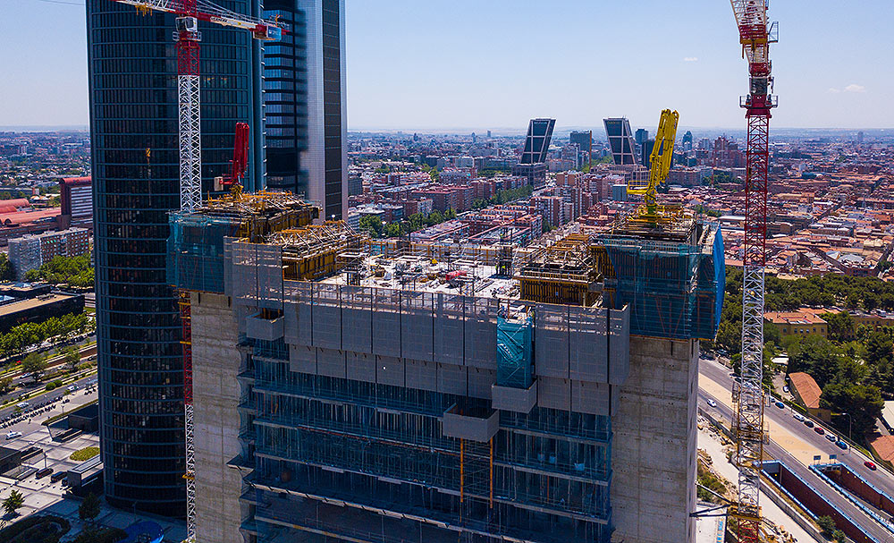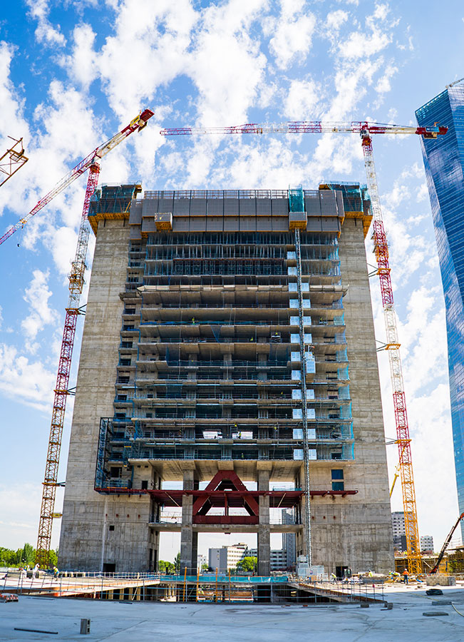 Die Komplexität des Projekts lag in den ständigen Querschnittsänderungen und dem gleichzeitigen Bau von Decken und Gebäudekernen. Die große Höhe bedingt den Einsatz des Krans, aber das ATR-Selbstkletterwerk mit hydraulischem Hub ermöglichte es, ihn für andere Aufgaben freizuhalten.