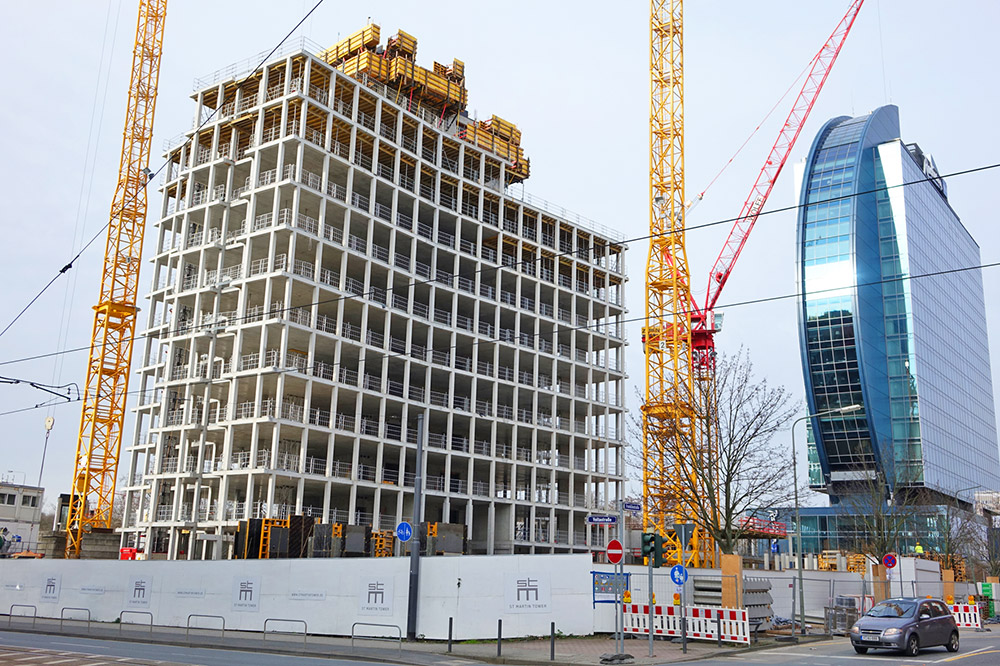 Mit dem St. Martin Tower wurde in Frankfurt am Main ein Bauvorhaben im Umfang von 46,5 Mio. € realisiert, das in vorbildlicher Weise Nachhaltigkeit und Effizienz miteinander verbindet. Als Generalunternehmer für die schlüsselfertige Erstellung des für ein „Green Building“-Zertifikat der Deutschen Gesellschaft für Nachhaltiges Bauen (DGNB) angemeldeten Bürokomplexes am Katharinenkreisel fungiert die Ed. Züblin AG, Direktion Mitte, Bereich SF 2. Für die Erstellung des 18-geschossigen Rohbaus hatte das ausführende Unternehmen Schalungssysteme der ULMA Betonschalungen und Gerüste GmbH eingesetzt.