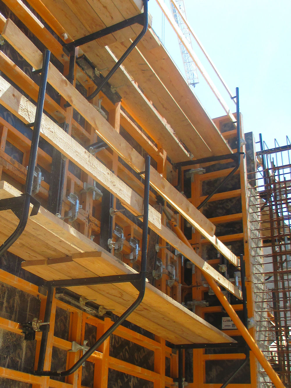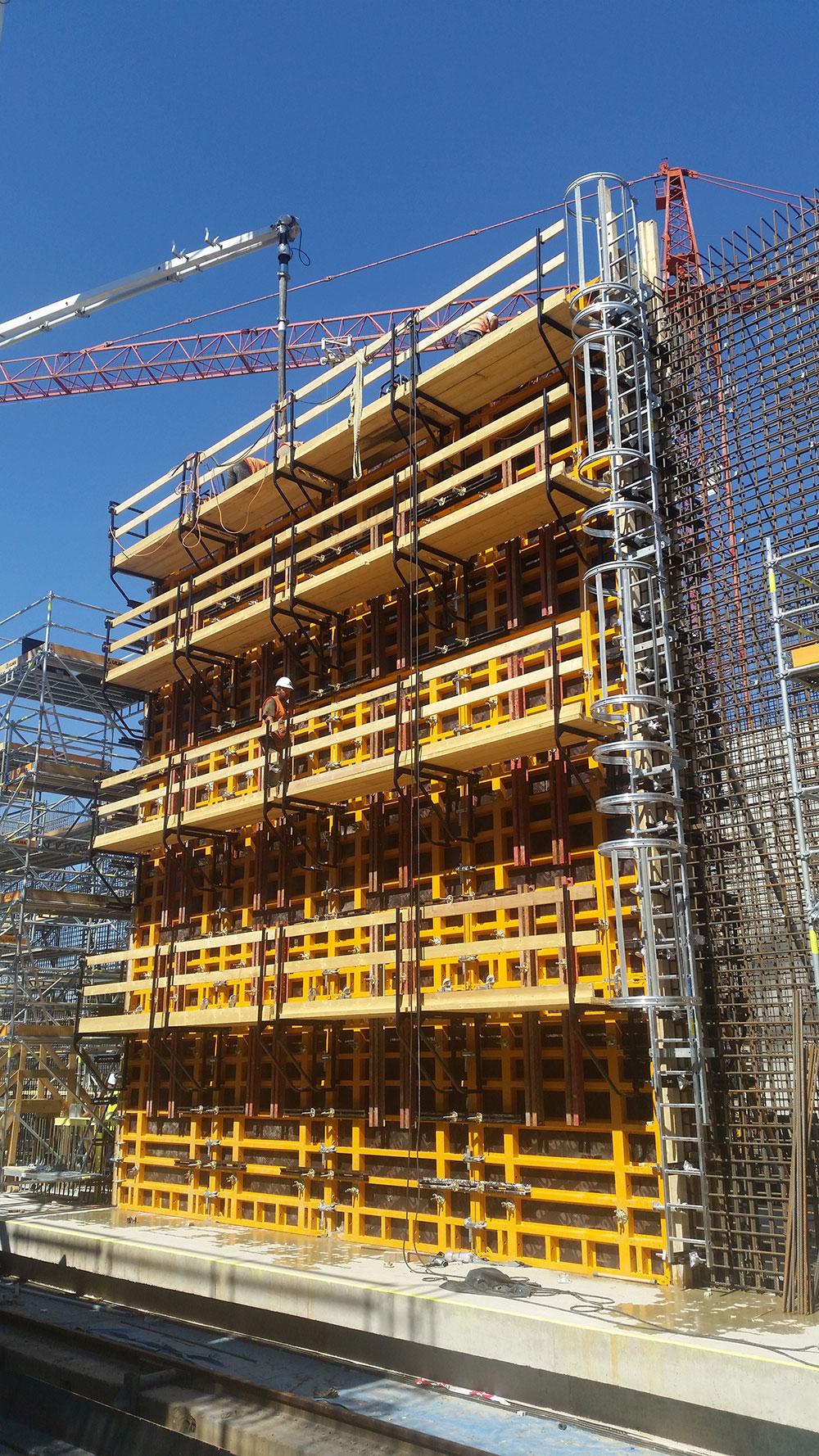 Die Betonierbühne ist einfach zu montieren, wodurch die Montagezeiten für Schalungszubehör und das anschließende Betonieren und Rütteln reduziert werden.