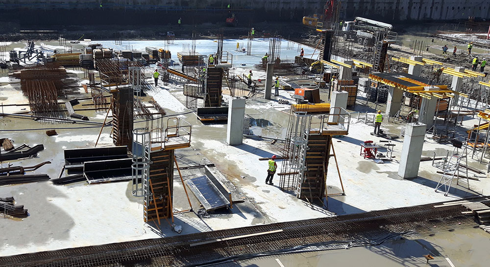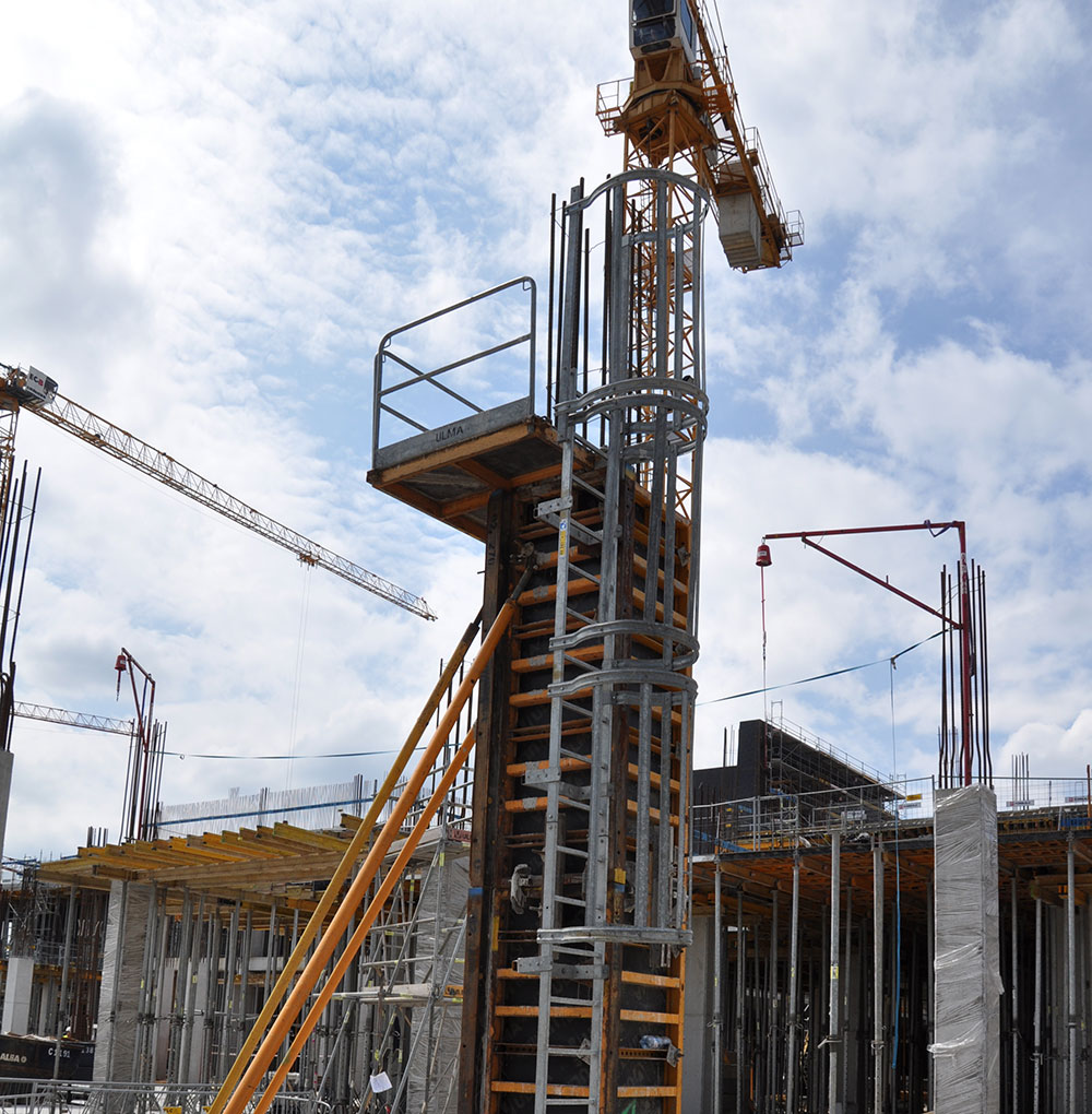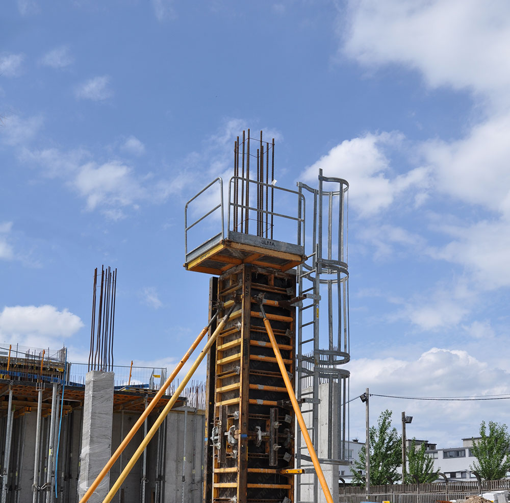 Sicherheitsausrüstung speziell für das Betonieren von Säulen. Die Montage des Systems kann am Boden erfolgen, was maximale Sicherheit für die Beschäftigten gewährleistet Es kann an jede Säulengröße angepasst werden. Alle Sicherheits- und Hebeelemente sind in die Plattform integriert, was sie zu einem kosteneffizienten und zuverlässigen System für das Erstellen von Säulen macht.
