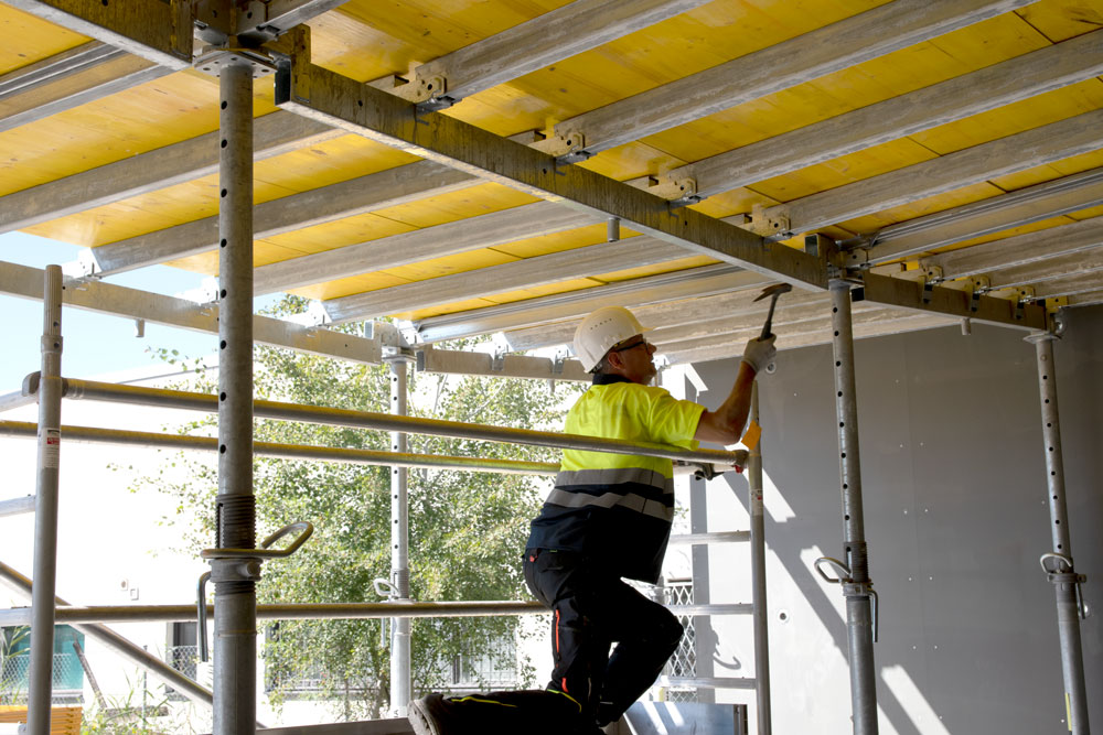 Onadek ist das Deckenschalungssystem für Ortbeton, extrem schnell, langlebig und sehr flexibel. Geeignet für alle Decken, auch mit unregelmäßigen Grundrissen, Unterzügen und Passbereichen, optimal für Wohnungs- und Geschossbau.