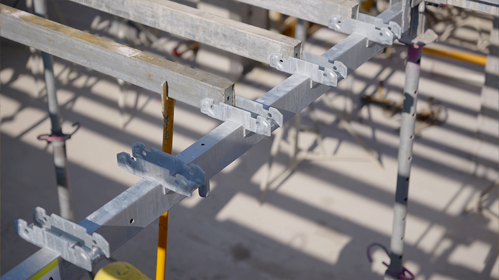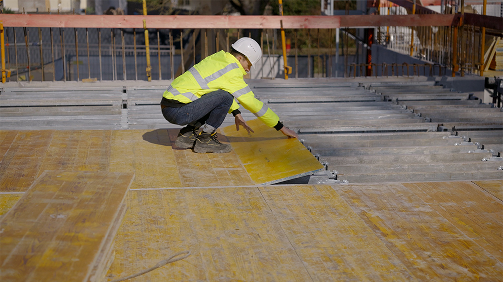 - Niedrige Stützrate: 0,4 Stützen/m² zum Betonieren und danach 0,2 Stützen/m² als Notunterstützung (Zwischenstützen können entnommen werden)