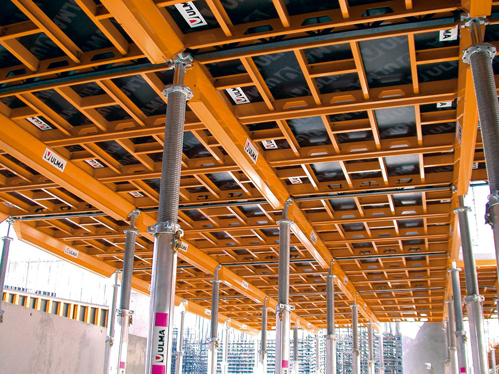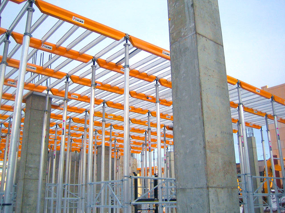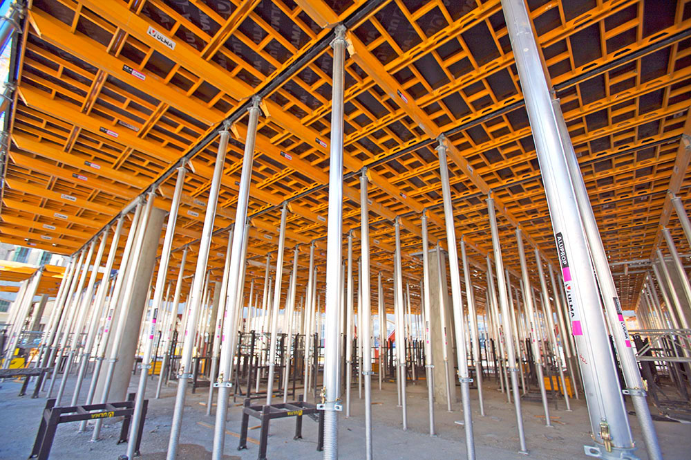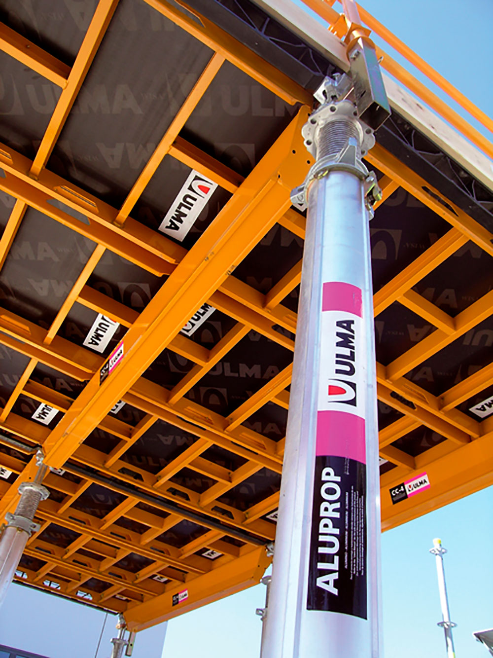 Aluminiumstützen Aluprop mit besonders hohen Tragfähigkeiten können als Einzelstützen oder Lasttürme mit Aussteifungsrahmen eingesetzt werden. Die Stützen sind nach DIN EN 16031 zertifiziert. Maximale Tragfähigkeit bis zu 74 kN.