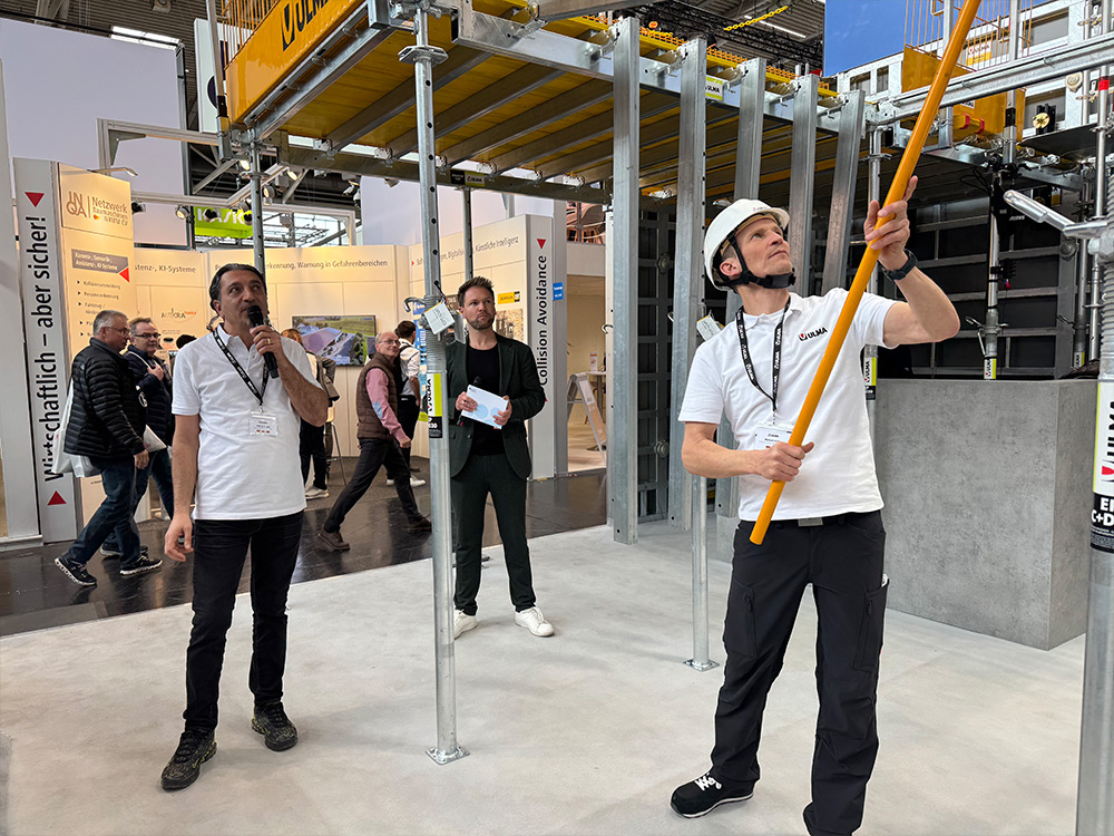 Eines unserer zentralen Messehighlights war die Präsentation unseres neuen Deckenschalungssystems ONADEK TOP. Entwickelt für sicheres Arbeiten von oben, setzt es mit einem Trägerabstand von nur 30 cm neue Maßstäbe. Die Schaltafeln lassen sich ohne persönliche Schutzausrüstung gegen Absturz verlegen – ganz im Sinne der DGUV-Regel 101-014. Die Rückmeldungen aus der Branche waren durchweg positiv, insbesondere auch hinsichtlich der Wirtschaftlichkeit: Mit einer Schalgeschwindigkeit von unter 0,20 h/m² bietet ONADEK TOP ein hohes Einsparpotenzial.